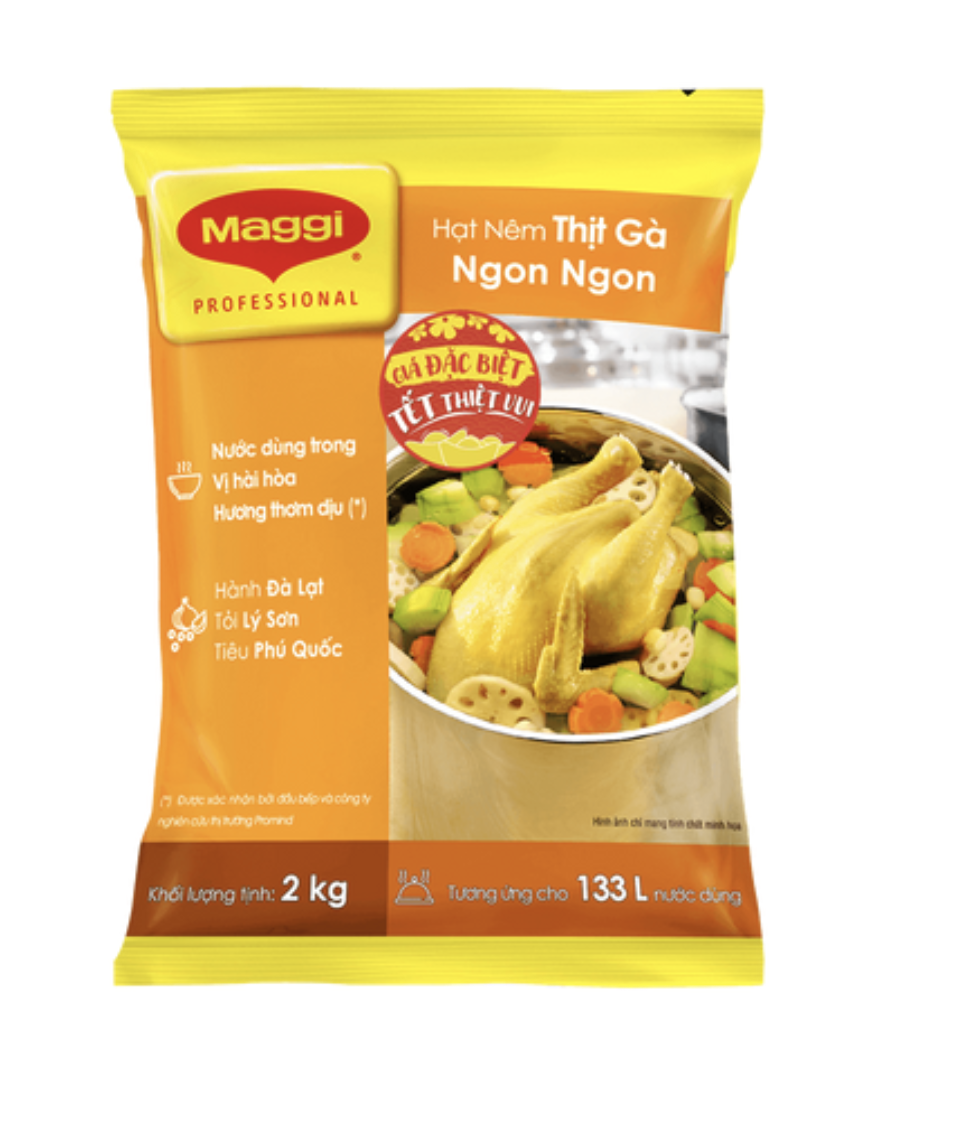 Hạt nêm gà Maggi chứa các thành phần tự nhiên, an toàn cho sức khỏe, giúp tạo nên hương vị thơm ngon và phù hợp với nhiều món ăn
